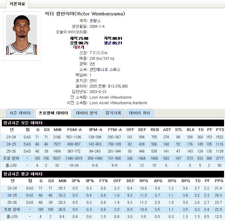 결국 웸반야마의 미래는 압도적인 재능과 함께, 신체 관리와 내구성을 얼마나 안정적으로 유지하느냐에 달려 있습니다.