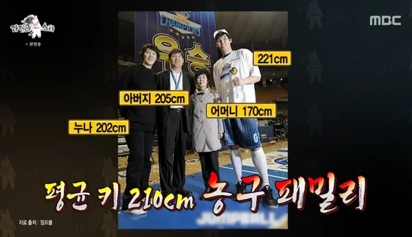 그의 가족 평균 키는 210cm으로 굉장히 큰 편인데요.